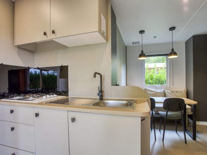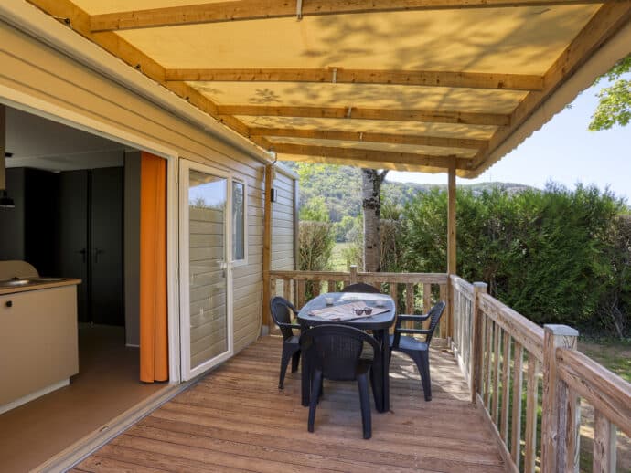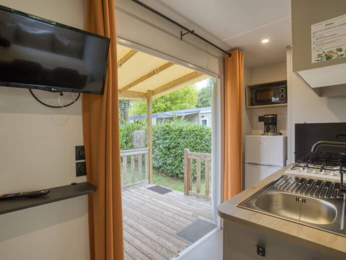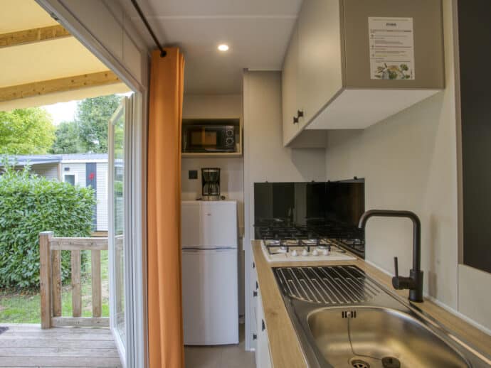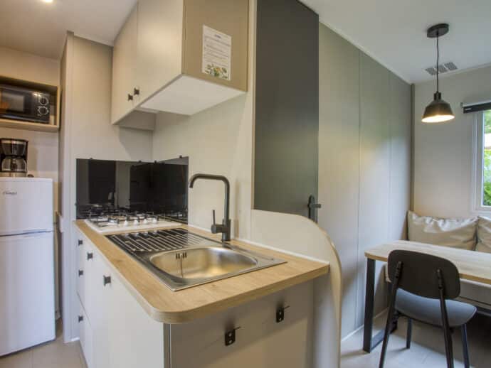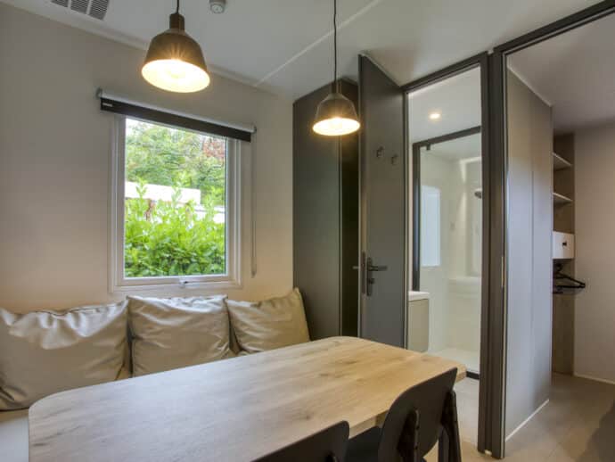 A mobile home with a cocooning atmosphere and compact, functional spaces.