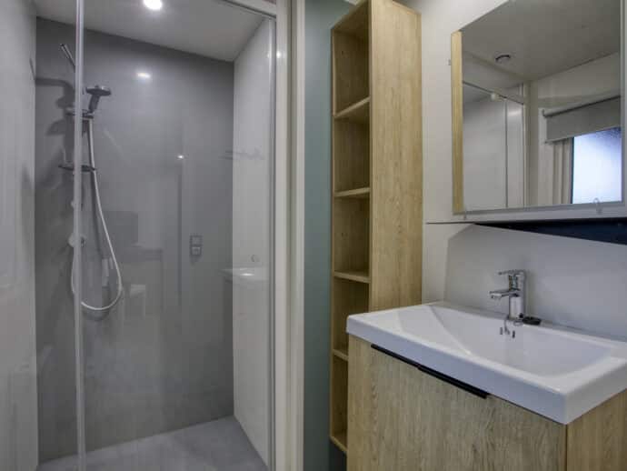 Peut accueillir jusque 7 personnes avec le couchage d’appoint dans l’espace de vie. Idéal pour les grandes familles ou les amis ou tout simplement pour ceux qui veulent de l’espace !